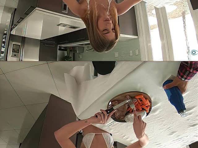 Sexy svelte brunette babe Katie Murphy keeps sucking cock of her BF 69