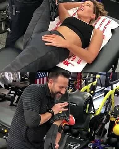 Kate Beckinsale working on her flexibility at the gym