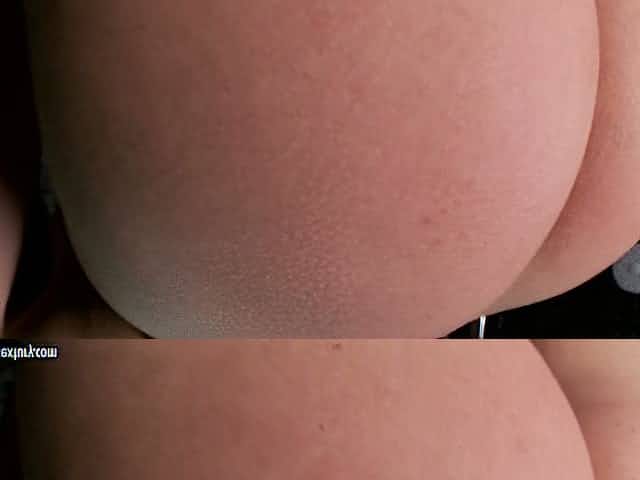 Stunning porn actress Sandra takes off jeans shorts and shows off big butt