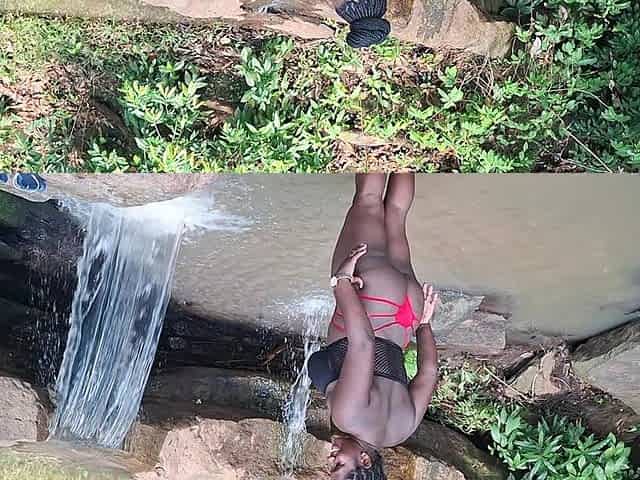 Raw documentary footages with three Afro tribe angels dancing in the river in the forrest