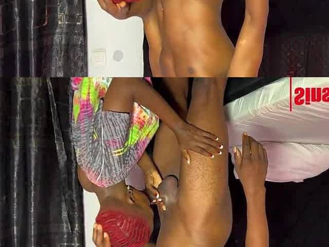 Amateur black ladies giving a kiss foreplay with Afro bang voyage owner