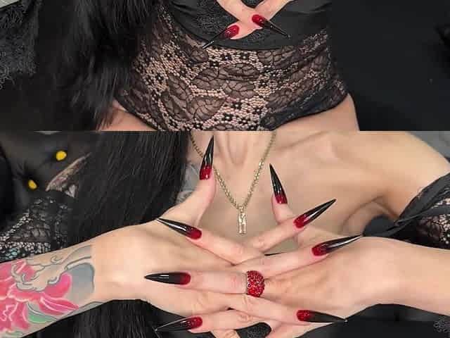 Hot Black Color Long Nails, Sharp Claws, Long Fingers and Hands Worship