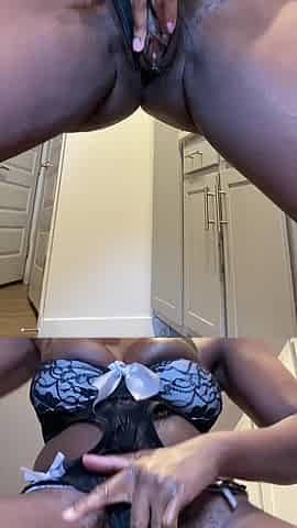 Ebony SSBBW Dildo Squirt on a Table