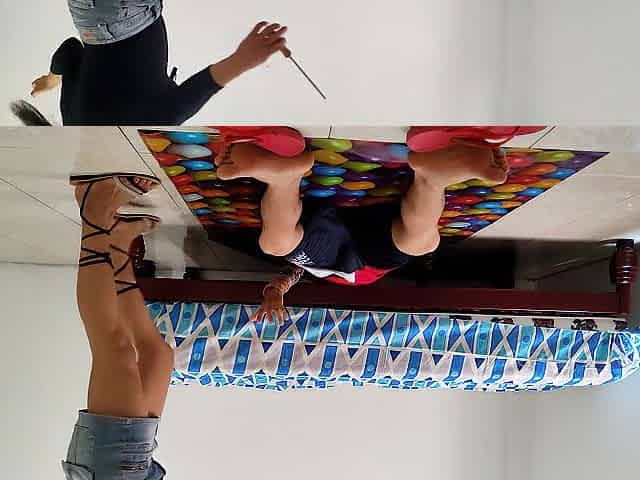 Mi pareja disfruta conmigo vestida de flores en cuatro