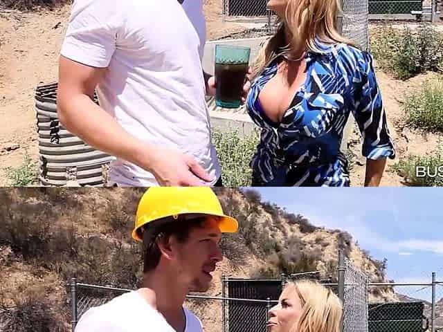 Uma mulher com seios generosos satisfaz o desejo ardente de