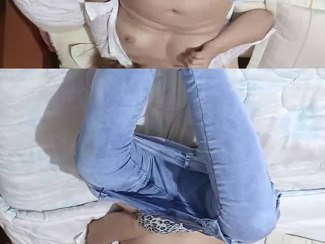 I flash myself in jeans so that the maid's stepson stroke and I end up masturbating
