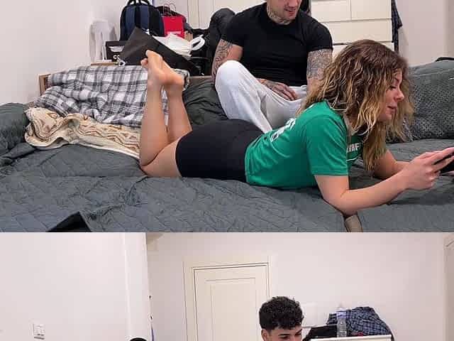 Stepson Records How His Big Ass And Busty Stepmom Tease Him With Tight Leggings And Ends Up Fucking Her On The Couch