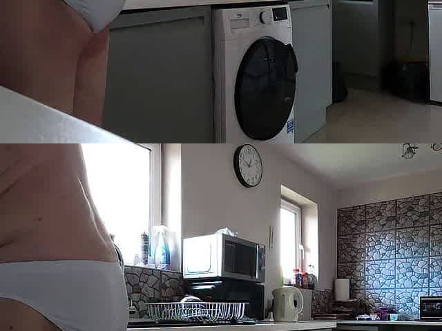 follo a un extraño en la cocina mientras mi marido entrena en el cuarto de al lado+ el no se entera