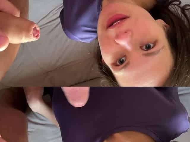 Perfect Oiled Footjob From Emma Till I Cum on Her Natural Tits