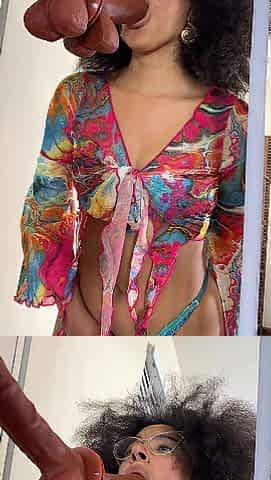 Hawt Black Wench Gives Fortunate Vibrator BJ in the Mirror