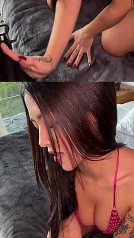 Angel in Tiny Pink Panties Rides and Fucks a Big Dildo