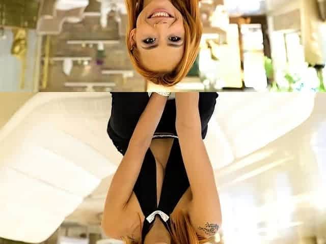 Pale Small Boobs Bob Haircut Blonde Doing Her Makeup in Front of the Mirror