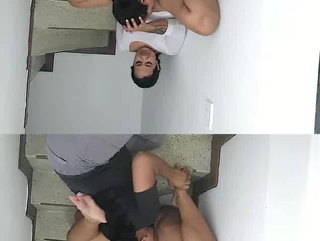joven se tropieza, y termina cayendo sentada encima de una polla parada