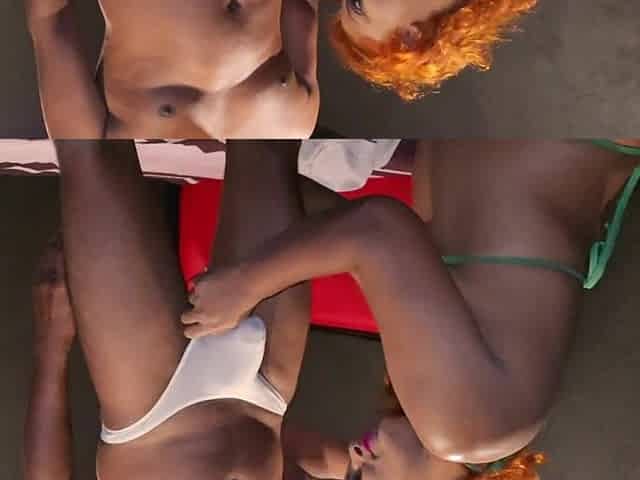 Slender booty black whore feeling shy but still enjoying it
