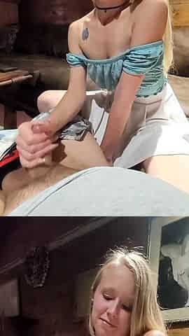 Cute blonde teen puts new sex toys to test on her pussy and his dick