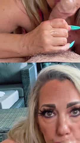 Redhead MILF Gives Stepson a Sloppy Blowjob and Swallows His