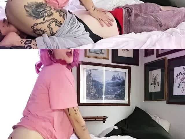 Voyeur roommate playing with herself as that babe watches me bang my girlfriend