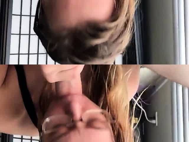 Blonde Amateur Babe Gives a Close-up Blowjob