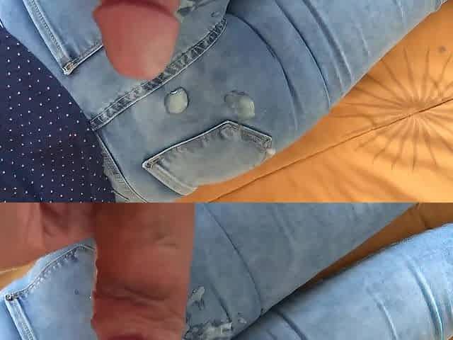 I hike up my jeans 3 times so my stepson cums on my booty, full cumshots