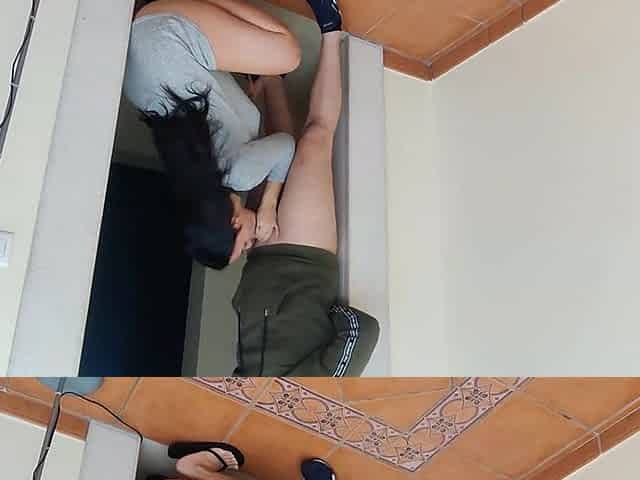 Anal a mi nueva vecina. Le gusta por el culo, el marido se suma y nos filma. Trío cuckold.