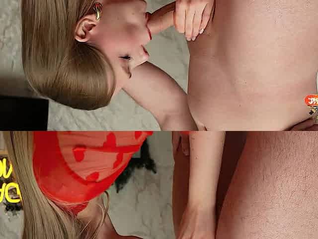 After A Blowjob, She Plays Snowballs With Him (cumkiss, A Lot Of Cum, Cuckold Training)