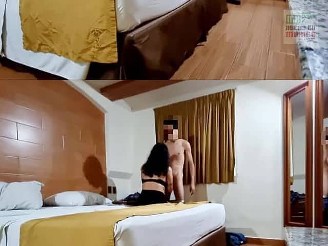 My wife in the motel with her youthful lover shows off very lewd and masturbates