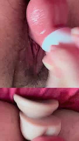 slender beauty swallowing 2 dicks