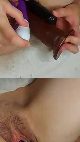 Double Vaginal with Cumshot Inside DP Dildo BBC and Cock in My Slut Pussy Creampie Whore MILF French Bitch Amateur