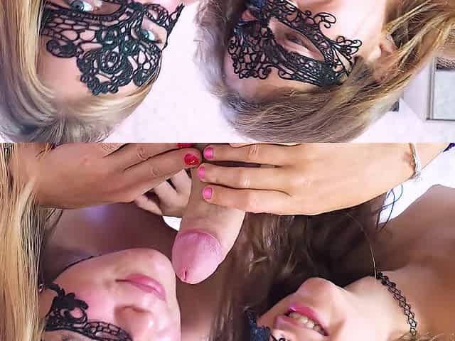 Hardcore double blonde blowjob