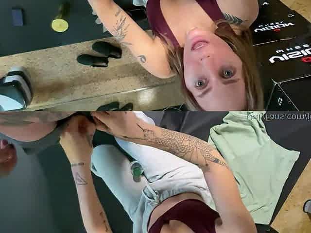 Split-Screen Baths Pegging Session with Bottom View - Latin Babe Pair