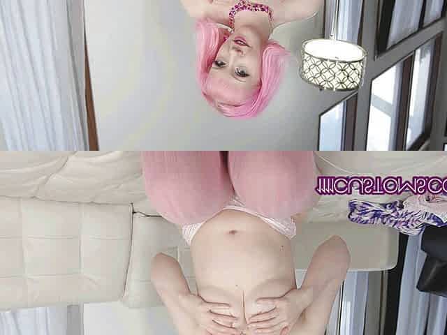 Pink-haired cutie Evie Rees uses a toy for double penetration