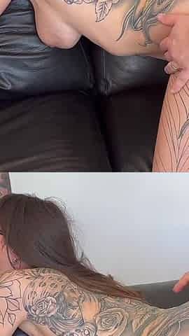 Tattood Girl with Glasses and Buttplug Fucks a Tattooed Dick, DP, Facial