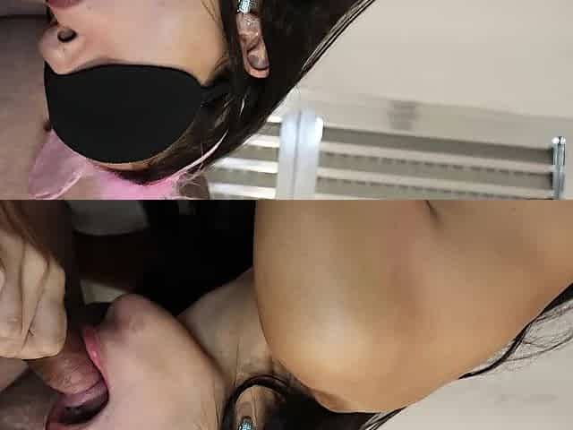 brunette hair gives naughty blowjobs