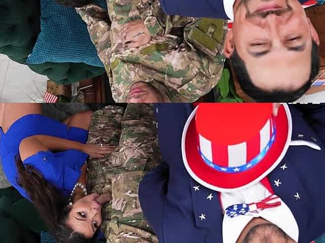 Hot brunette mia bangg gives pov blowjob before threesome