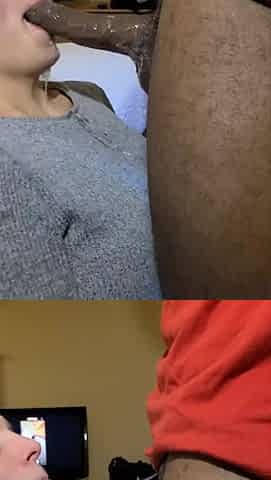 Skinny slut sloppy BBC blowjob