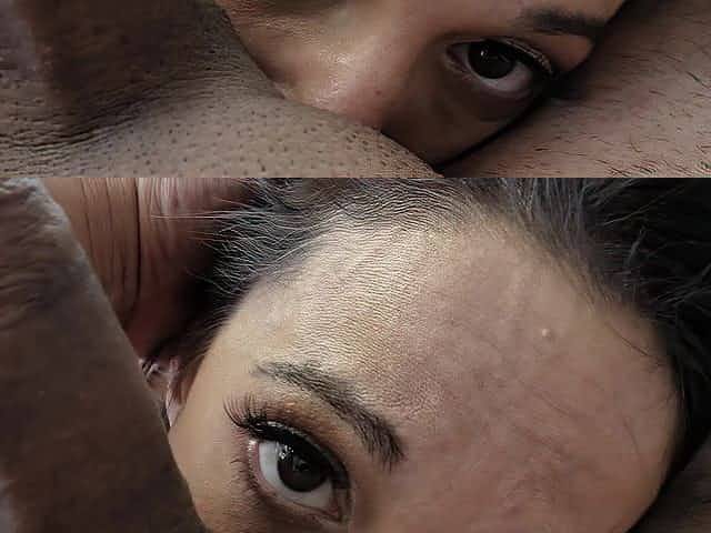 Intereacial sex leaves Asian babe with a mouthful of cum