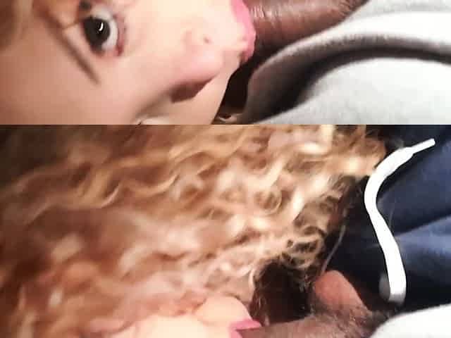 Interracial blowjob for brunette sucking big black cock
