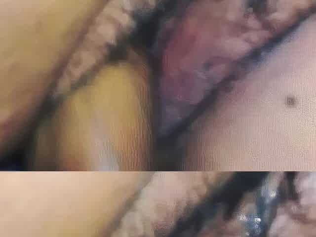 Small amateur has her taut vagina stretched wide by a ebony rod