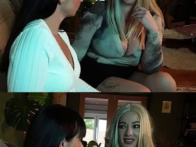 Blonde and brunette lesbian girls licking and toying