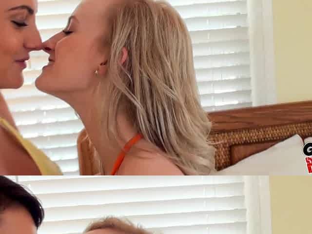 Two Slender Girls Julia Ann And Olive Glass Fuck On The Bed