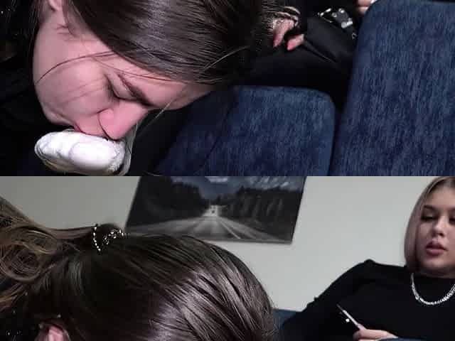Foot Fetish Lesbian Domination - Thieving Whore Gags on Feet