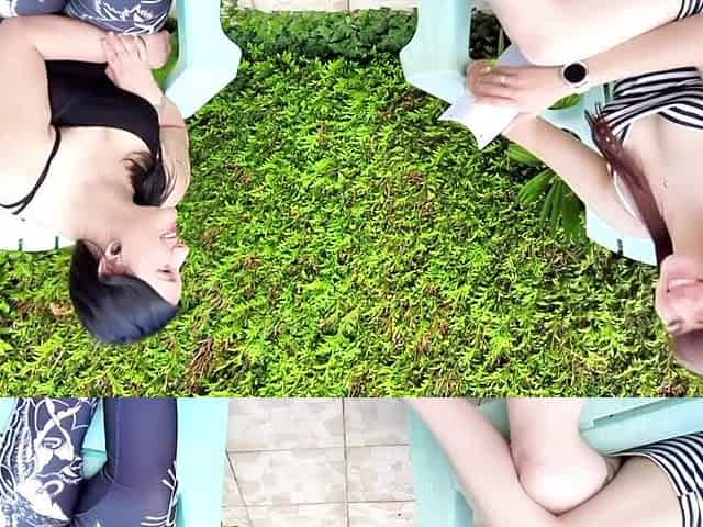Horny Lesbian Licks Two Wet Pussies Until They Cum