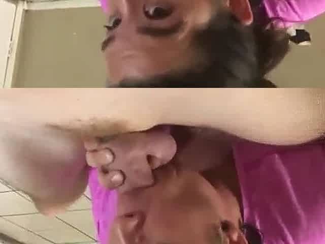 Two amateur brunette milf double blowjob