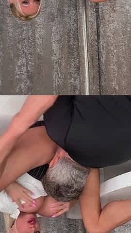 Huge guy humiliates gorgeous blonde milf with a deep throat blowjob