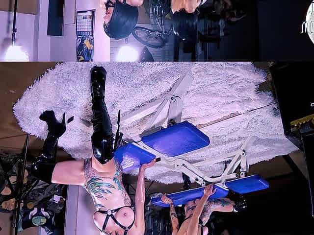 Photo shoot amateur wife craves to be a pornstar, high boots, oil and harness.