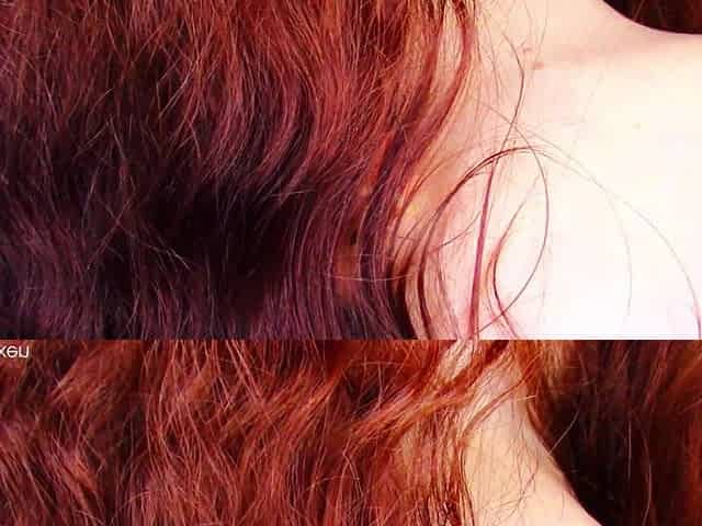 A woman in red pants and a curly twat cums