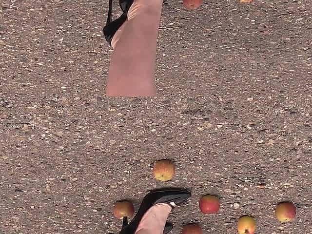 Crush fetish outdoors Corpulent legs in high heel shoes crush apples