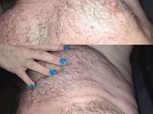 Mi esposa hace que me corra muy fuerte lamiendo y chupando mis pezones cuando me hace la paja