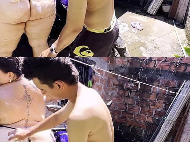 NEIGHBOR WASHES THE MOTORCYCLE AND FUCKS ME IN THE LAUNDRY.