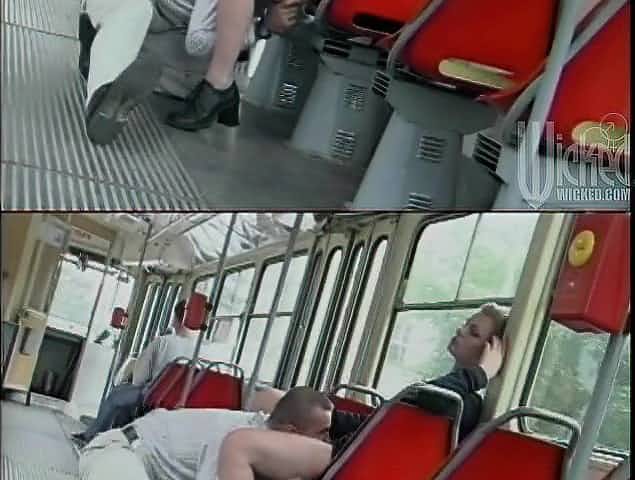 Public sex in the bus with a naughty blonde and a total stranger